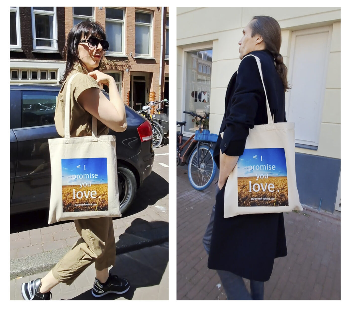 The original The Dream Vehicle tote bag is here! Inspired on one of the more defining poems from the project, the  heavy duty canvas “I promise you love” tote bag is added to the webshop. Go to our shop and check out how to order, while supplies last. Enjoy 2026 with some wearable, The Dream Vehicle poetry! Much love, Anna & Rob